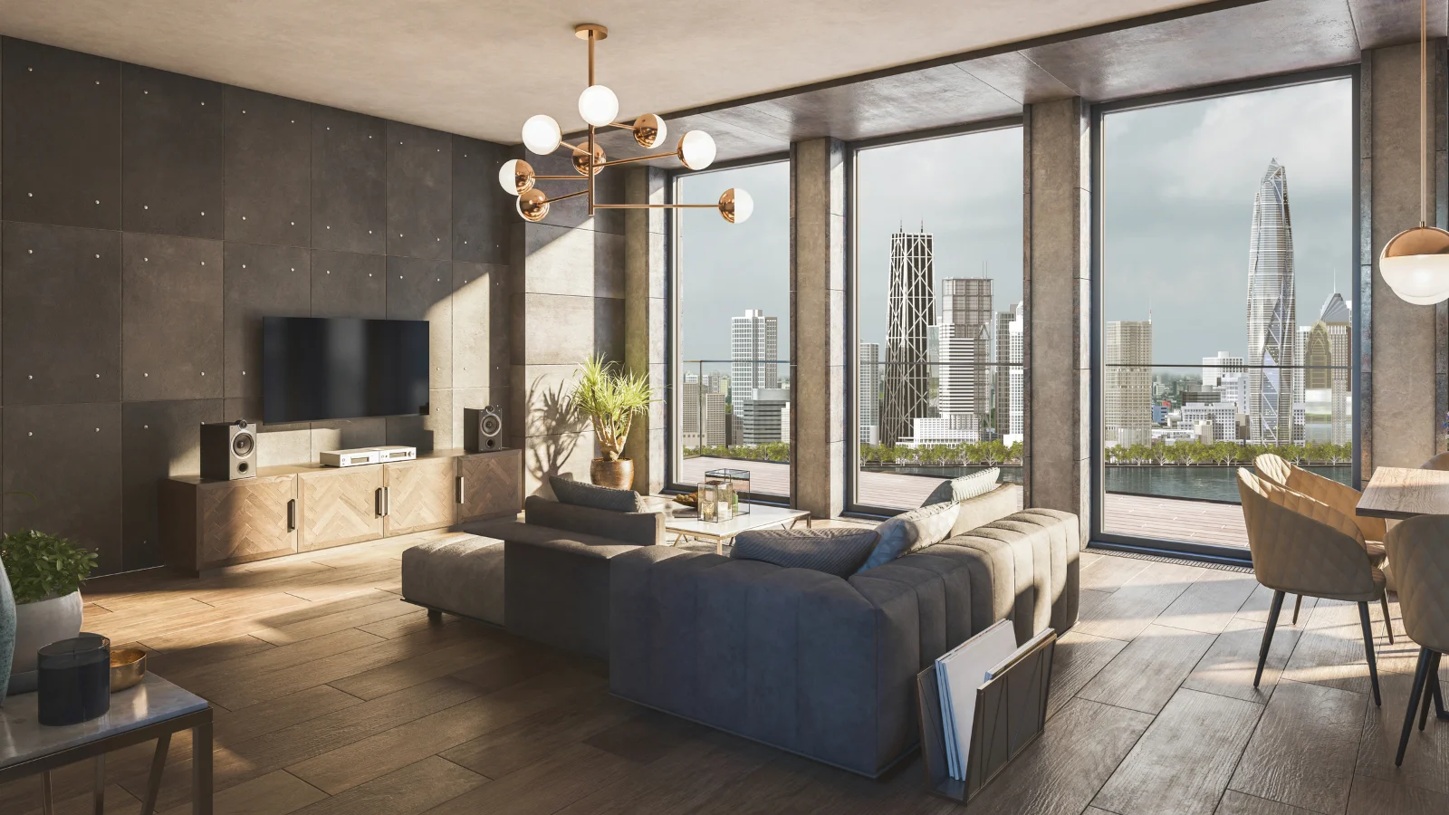 - Là phong cách nằm trong danh sách được nhiều khách hàng lựa chọn nhất cho căn hộ và những không gian nhỏ. Bởi phong cách này giúp tối đa hóa không gian và giúp không gian nhỏ trở nên ấn tượng hơn. Màu sắc trung tính nổi bật với một màu đậm, cũng như việc bố trí đồ đạc bất cân xứng là đặc điểm nhận dạng chính của nội thất theo phong cách hiện đại này.