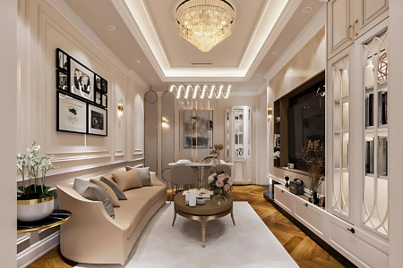 - Thiết kế nội thất tân cổ điển lấy cảm hứng từ phong cách kiến trúc của Châu Âu, kết hợp với kiến trúc hiện đại. Phong cách tân cổ điển là một phong cách đặc biệt mang nét đẹp tuyệt mỹ và tinh tế.