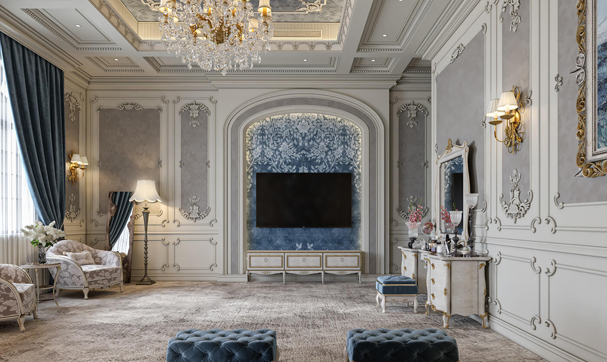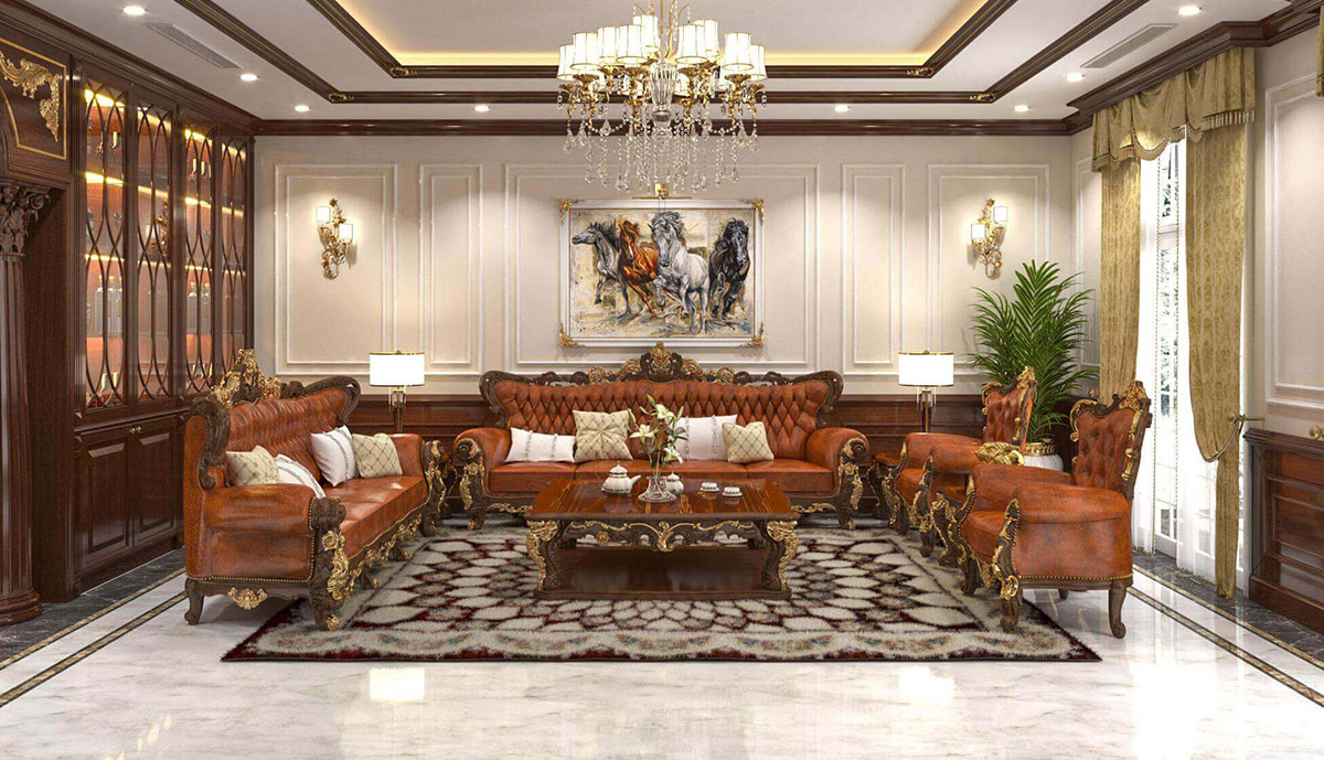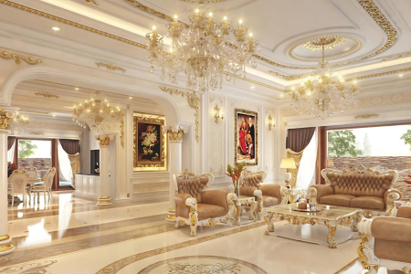 Phong cách cổ điển mang đến vẻ đẹp sang trọng và quyền quý với các chi tiết chạm trổ cầu kỳ, đối xứng và tỉ mỉ. Màu sắc thường là vàng đồng, trắng kem, nâu trầm kết hợp nội thất cao cấp, tạo nên không gian đậm chất hoàng gia, trang trọng và đẳng cấp vượt thời gian.